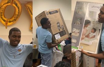 Joyful Single man throws himself a baby shower as he awaits the birth...