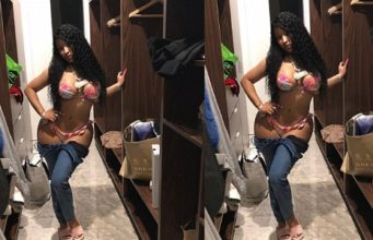 Nicki Minaj takes down her jeans to reveal her skimpy underwear in new...