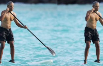 Shirtless Barack Obama pictured paddleboarding in Hawaii (photo)