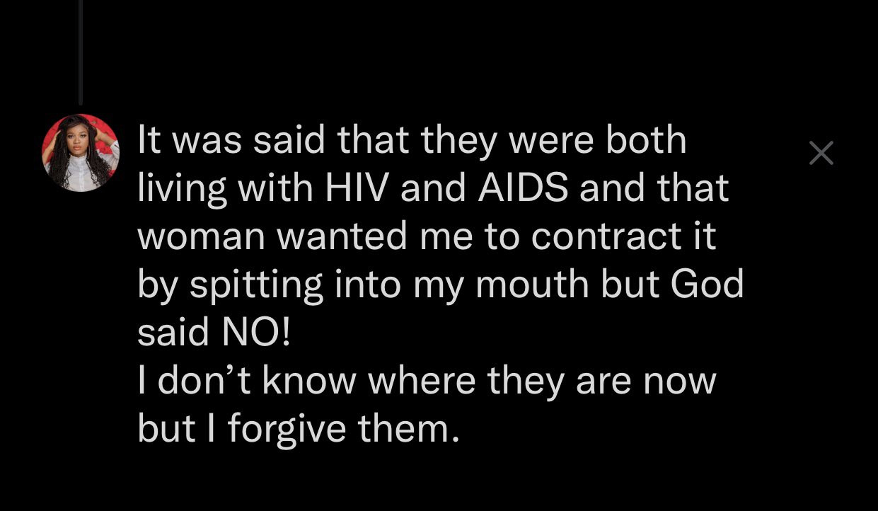 Taking to her official Twitter page to narrate the ugly experience, Thelma said that growing up she lived with a relative and they treated her badly.