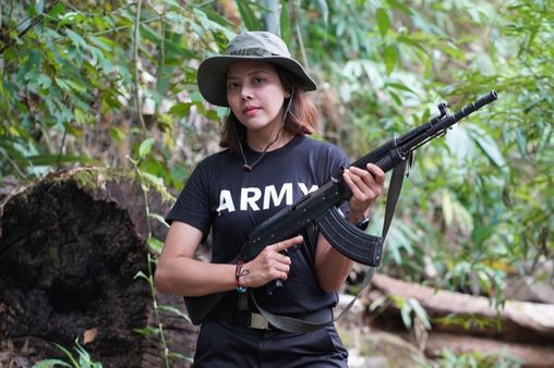 Posing for photos with an assault rifle on social media, Htar Htet Htet revealed that she’s taking a stand against the military as citizens plot a revolution against the country’s military.