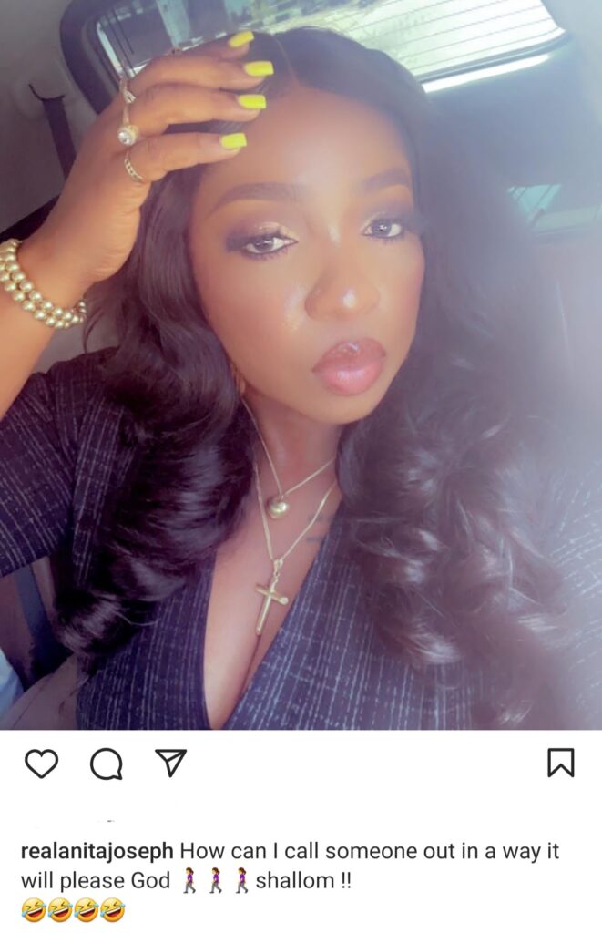 It all started when Anita shared an edited photo of herself with the caption, “How can I call someone out in a way that will please God?” with multiple laughing emojis.