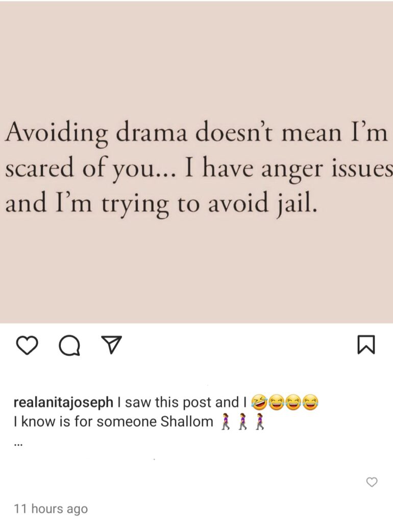 Though she didn’t directly mention Anita’s name, some of her followers deciphered that she was referring to Anita Joseph.