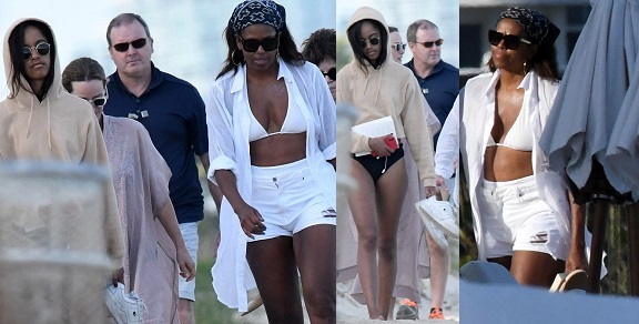 The day at the beach appeared to be all about girl time as former president Barack Obama was nowhere to be seen.