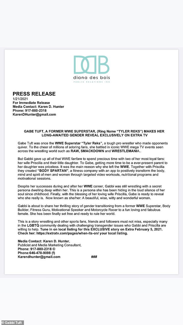 “This is a story that wrestling and other sports fans, friends and followers must not miss, especially many in the LGBTQ community dealing with challenging transgender issues, who Gabbi and [wife] Priscilla are willing to help”.