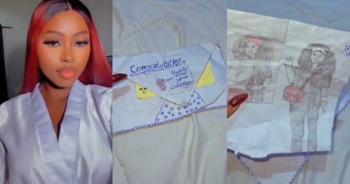 The woman @suxain90 displayed a paper envelope with the words “Congratulation Auntie Suzzy on your wedding” boldly written on it, as shown in the video. She said her little male cousin had given it to her as a wedding gift.