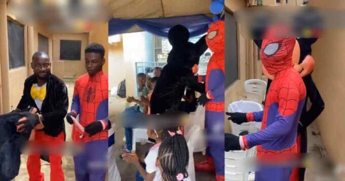 A first-class law graduate has sparked conversation online as he turned into a party mascot wearing a Spiderman costume to make ends meet for his daily bread amid economic hardship.
