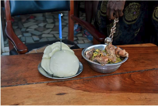 The celebrant, instead of using a regular cake, used Fufu to mark his special day.