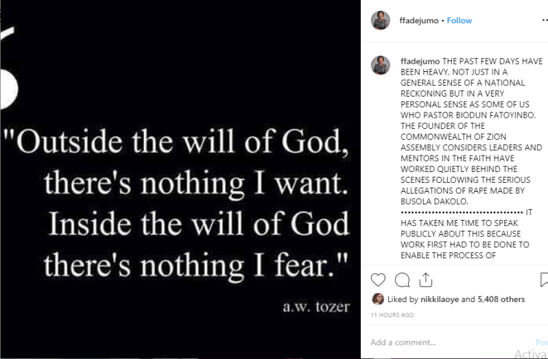 THE PAST FEW DAYS HAVE BEEN HEAVY, NOT JUST IN A GENERAL SENSE OF A NATIONAL RECKONING BUT IN A VERY PERSONAL SENSE AS SOME OF US WHO PASTOR BIODUN FATOYINBO, THE FOUNDER OF THE COMMONWEALTH OF ZION ASSEMBLY CONSIDERS LEADERS AND MENTORS IN THE FAITH HAVE WORKED QUIETLY BEHIND THE SCENES FOLLOWING THE SERIOUS ALLEGATIONS OF RAPE MADE BY BUSOLA DAKOLO.