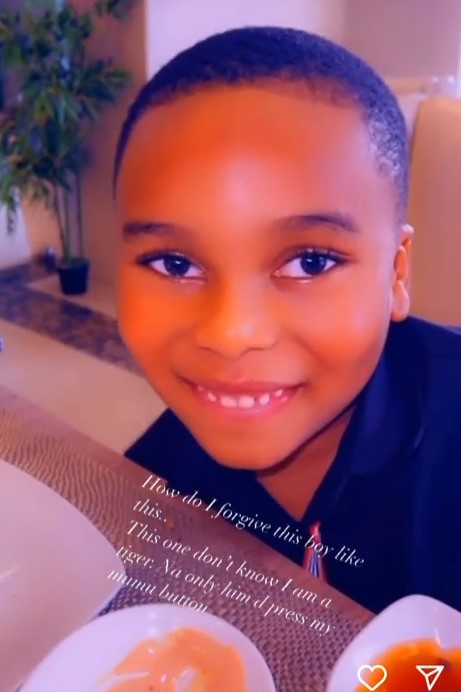 Nollywood actress, Tonto Dikeh gave a rather hilarious response to her son, King telling her she’s clumsy and funny sometimes.