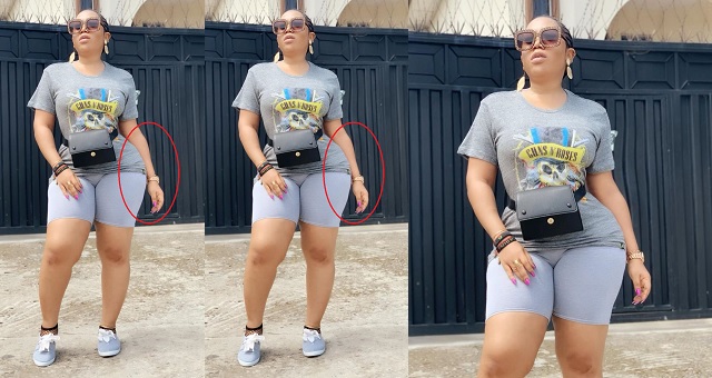 Nollywood Actress has joined the list of female celebrities caught on the wrong side of an editing job as she was recently dragged for ‘photoshopping’ her hips on social media.