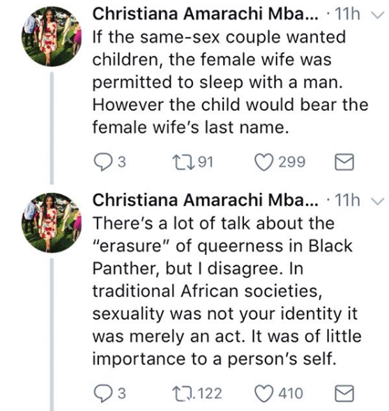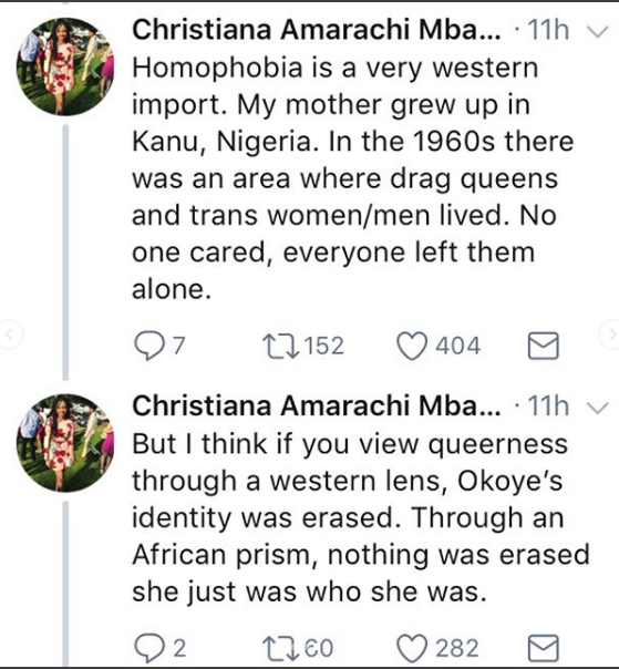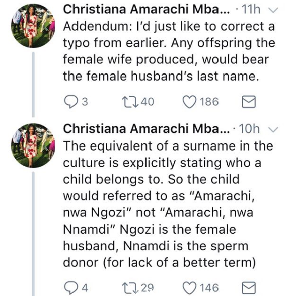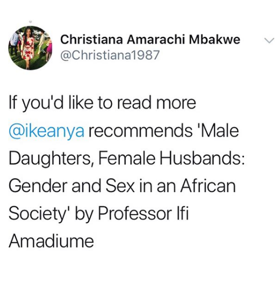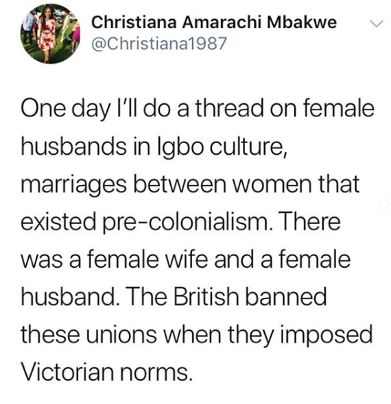 Media personality, Christiana Amarachi Mbakwe, has taken to social media platform, Twitter to reveal a questionable history about the Igbo culture that has since caused a stir online.