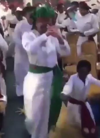In the video that has since gone viral online, the members of a white garment church can be seen dancing down the aisle while a minister sang “Gbese for Jesus.”