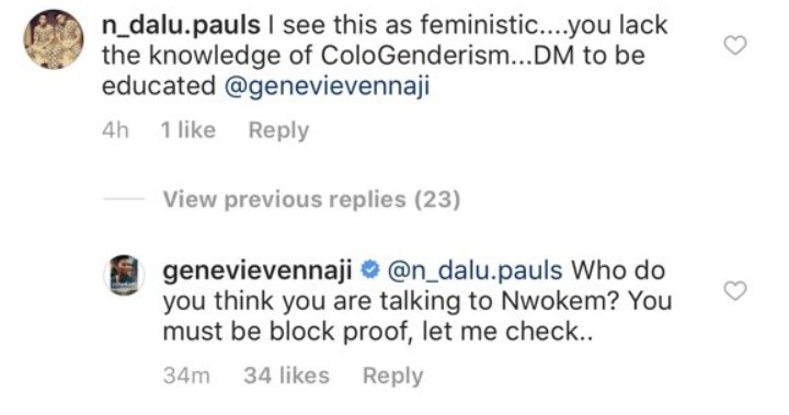 A Nigerian man has tagged Genevieve Nnaji a Feminist while calling her out over a post she ‘endorsed’ over sexual harrassment and consent.