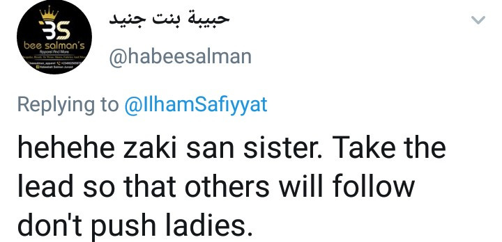 @habeesalman wrote, “hehehe zaki san sister. Take the lead so that others will follow don’t push ladies”.