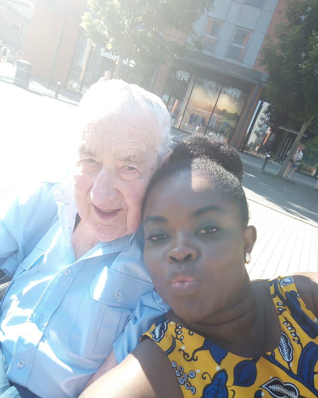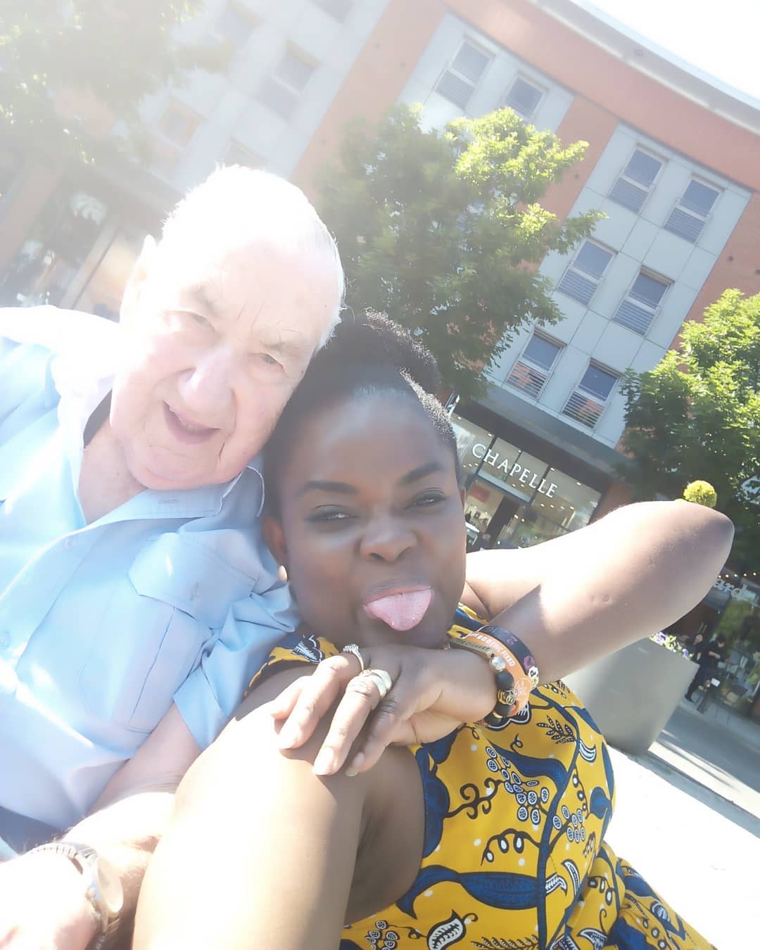 A Ghanaian lady recently took to her page to share loved up photos of herself with her 90-year-old husband – her photos got her dragged into an exchange by a troll.