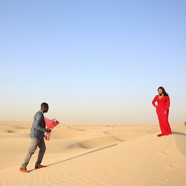 Instead of going to the studio, village or lovely areas in the city, the couple instead choose an old location which is the desert just to make the needed difference.
