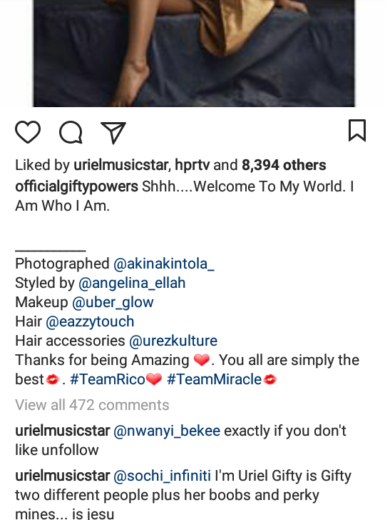 Big Brother Naija: See Gobbe alumnus, Gifty in yet another attempt to break the internet yesterday, posted a topless photo, with her bosoms on display.
