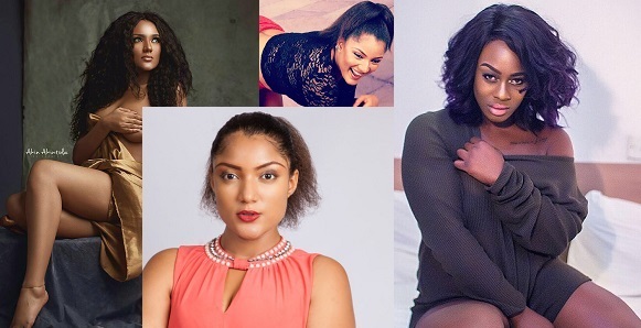 Gifty is seen in the photo, clad in only a gold colored silk fabric wrapped around her waist, as she sat provocatively on a bed.
