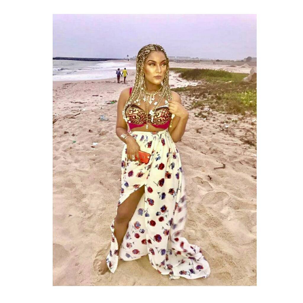 Gifty had stepped out in bra and a skimpy short, while flaunting her chest in public.