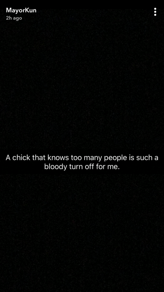 “A chick that knows too many people is such a bloody turn off for me. Can’t lie we’d just kpansh and get it over with! Real talk”
