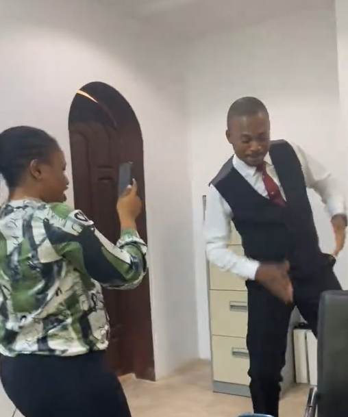 The video has stirred reactions online, with many highlighting the couple’s intentional act to show off their love and togetherness on the lady’s face, even though it was in her office.