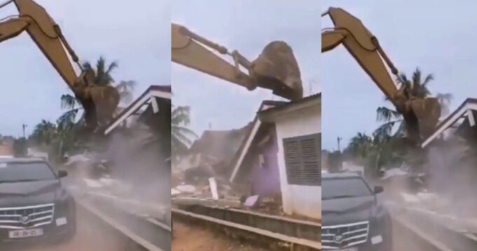 A Ghanaian clergywoman has been captured on video praying for divine intervention as a government task force demolishes her church for reportedly operating without a permit.