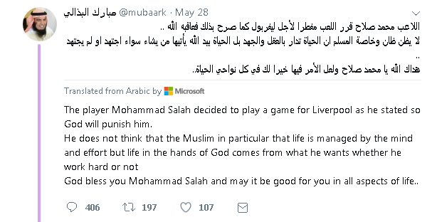 An Islamic preacher in Kuwait, Mubarak al-Bathali has slammed Liverpool’s Egyptian footballer, Mohamed Salah with claims that the Liverpool player was punished by God for breaking his fast before the UEFA Champions League final game against Real Madrid in Kyiv.