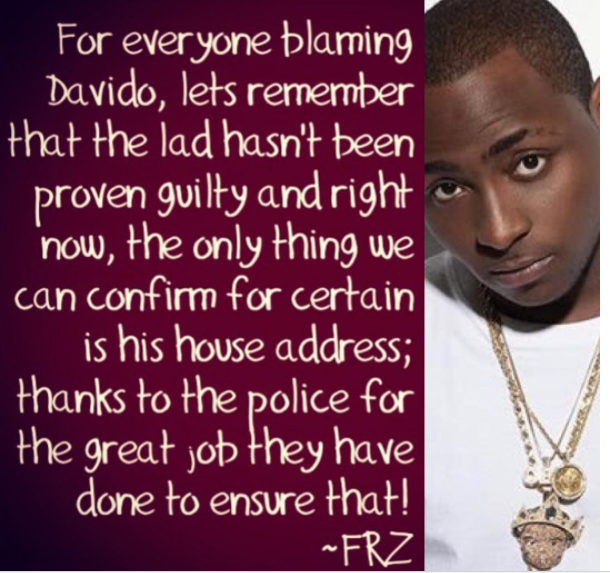 He took to his Instagram page as usual to reveal that the singer hasn’t been found guilty of any crime and as such no one should blame him.