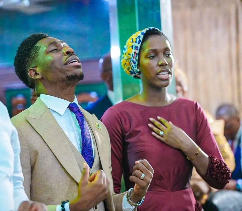 Marie, who married the gospel singer a few weeks ago, wore a purple dress and tied a yellow scarf on her head as she addressed the congregation in a church in Akwa Ibom, Cross River state.