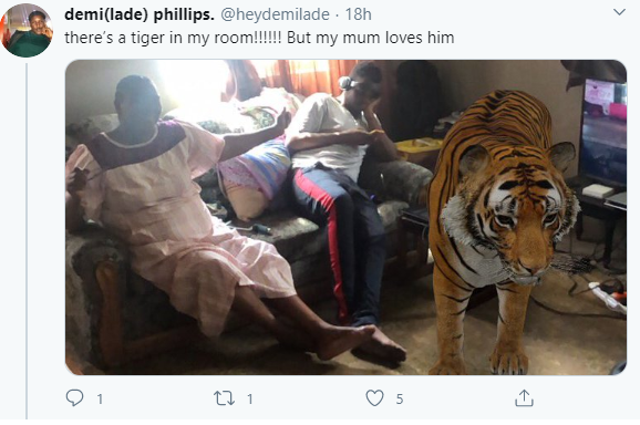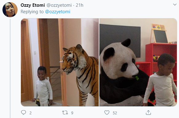 Some Nigerians have taken to Twitter to share images of wild animals in their homes and the reaction of their kids/parents to it.