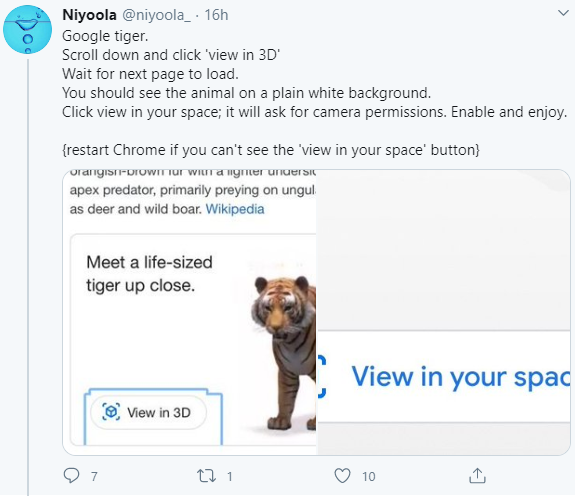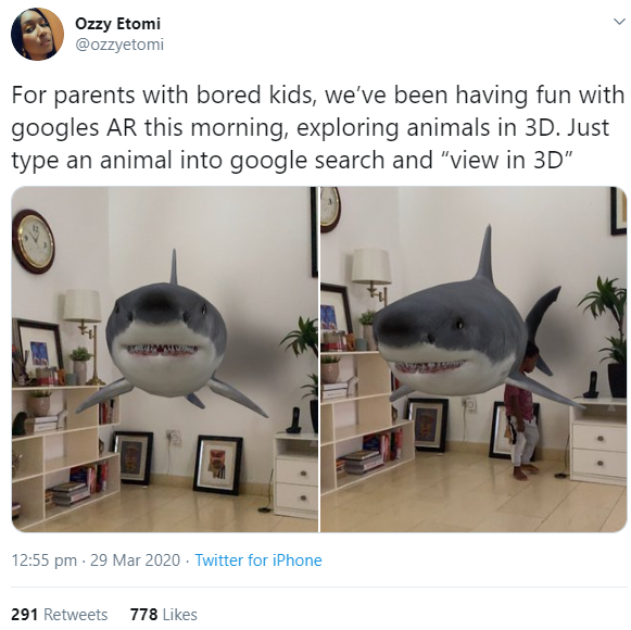 As seen on Twitter, Google has given people the chance to view some certain animals in their living space in 3D and Nigerian parents are having a field day with the feature.