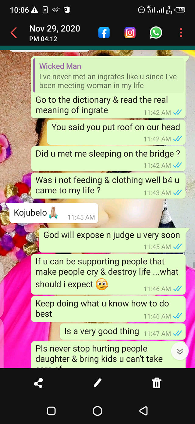 “Have been silent for so long but i wouldn’t allow you destroy the future of my kids…YES..This man came to my life with all righteousness and changed me to a celestial which i regret 😡 Lanre teriba Atorise the father of my kids is so irresponsible and lives fake life.