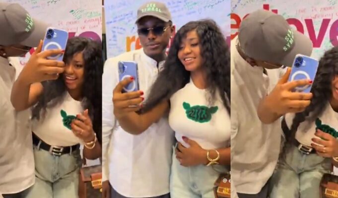 Playful moment between actor Timini Egbuson and a fan during his surprise visit to the cinema (WATCH)