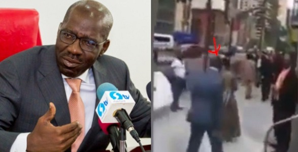 Edo State Governor, Godwin Obaseki got disgraced by some angry protesters at the 74th United Nations General Assembly he attended with some government officials, after he was spotted walking outside the UN building in New York.