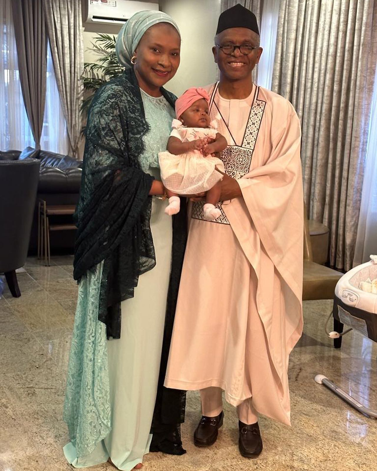 They shared photos from the ceremony held to welcome the new addition to their family and revealed her name as Fatima Layan El-Rufai.
