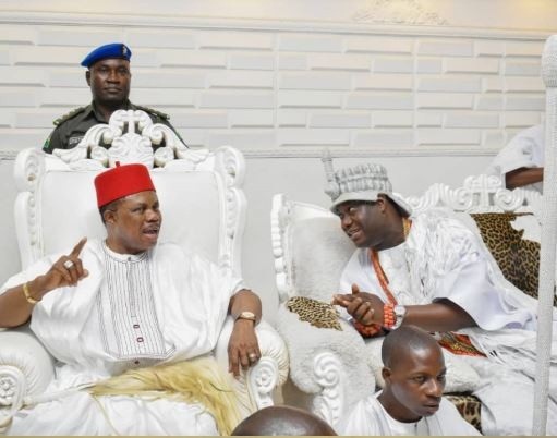 Governor of Anambra State, Willie Obiano, on Friday paid a courtesy visit to the Ooni of Ife, Oba Adeyeye Enitan Ogunwusi, and his queen, Olori Silekunola Naomi to congratulate them on their wedding which held last week.