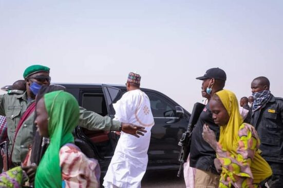 It was gathered that the governor and his aides were moving to Monguno, the capital of the Local Government Area of Borno State when they spotted the woman and some young girls standing by the road side.