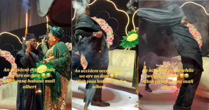 The Hausa groom and his bride had held decorative fire guns used in recent parties for a couple-moment when the sparks from the gun caught the man’s agbada and set it on fire.