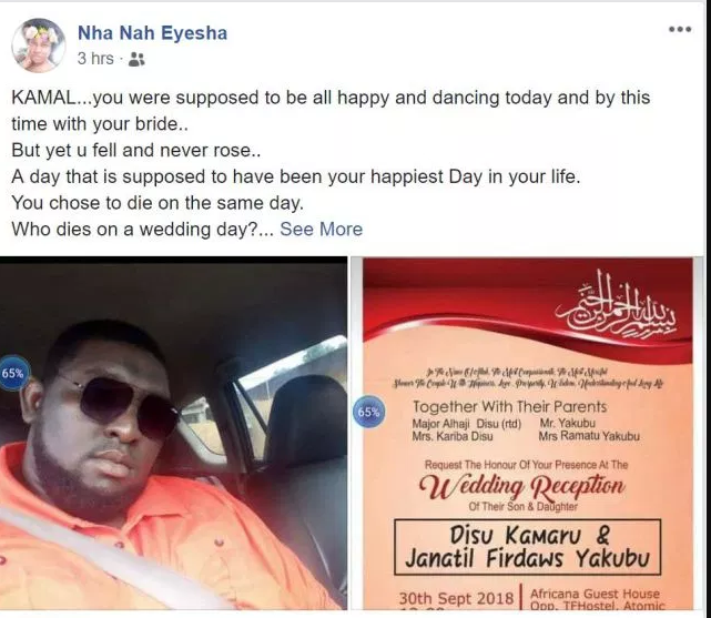 The groom who was seriously injured in the accident, was rushed to the Legon Hospital but pronounced dead on arrival, turning the entire function into a mourning ground.