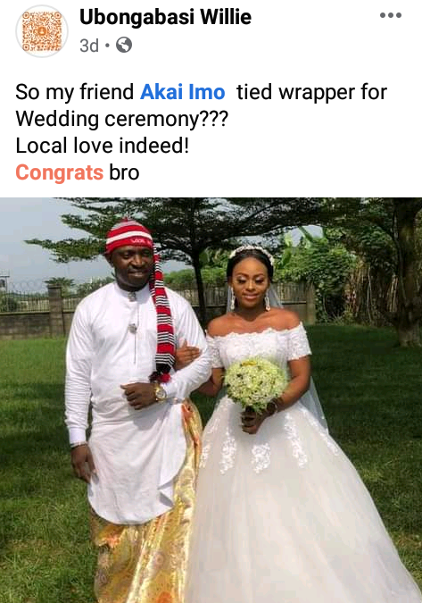 A man has won the hearts of many culture-conscious Nigerians on social media with his choice of attire at his white wedding.