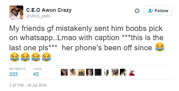 Apparently, he figured the picture wasn’t meant for him..So, he decided to call her…and surprisingly her phone was off………The Caption of the picture gave her away!!