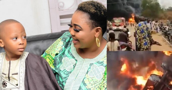 Popular Nigerian actress, Omowunmi Ajiboye has taken to social media to publicly thank God for saving her son from being a victim of the Abeokuta tanker explosion.