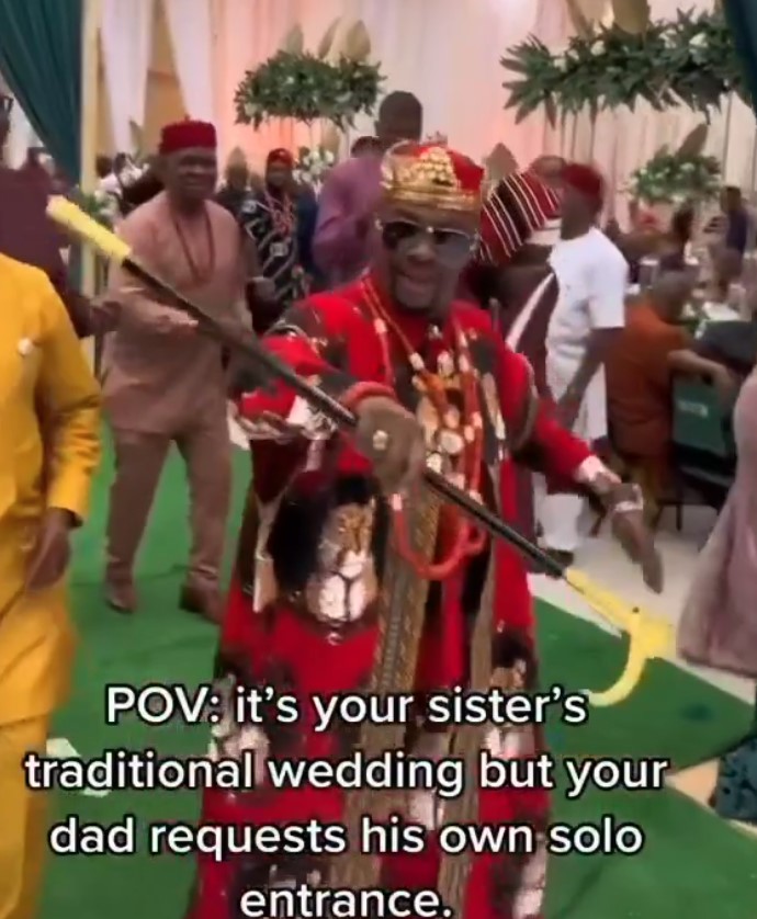 A video shared online captures the moment the father, who appears to hail from the eastern part of Nigeria, stole the show at his daughter’s wedding.