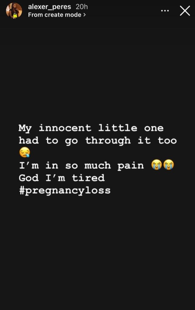 In a post shared via her Instastory, she expressed how heartbroken she felt to lose her child and expressed distress at the whole situation.