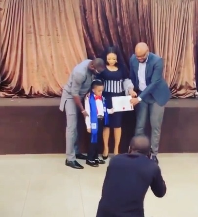 Sharing a video which captured the happy moment ‘her husband’, Prince Kpokpogiri accompanied her and her son to receive his graduation certificate, Tonto wrote revealed she had always secretly prayed about having a man stand as a father to her son.