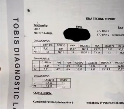 In a new update shared on Monday, July 25, Joy’s sister revealed that they conducted a DNA test to ascertain if the accused is the father of the child, but the results proved he is not the biological father.