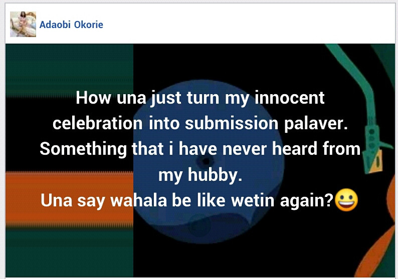 “How una just turn my innocent celebration into submission palaver. Something that I have never heard from my hubby. Una say wahala be like wetin again?” she wrote.