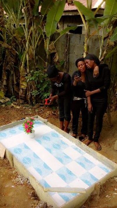 They wept uncontrollably at his grave after he was buried at their hometown in Ijebu Igbo, Ogun state.