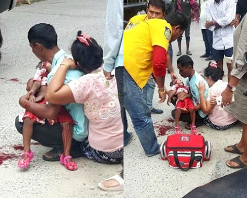 The 3-year-old son of a Myanmar couple who was leaving the Buddha Temple, was hit and killed by an incoming car few hours ago.